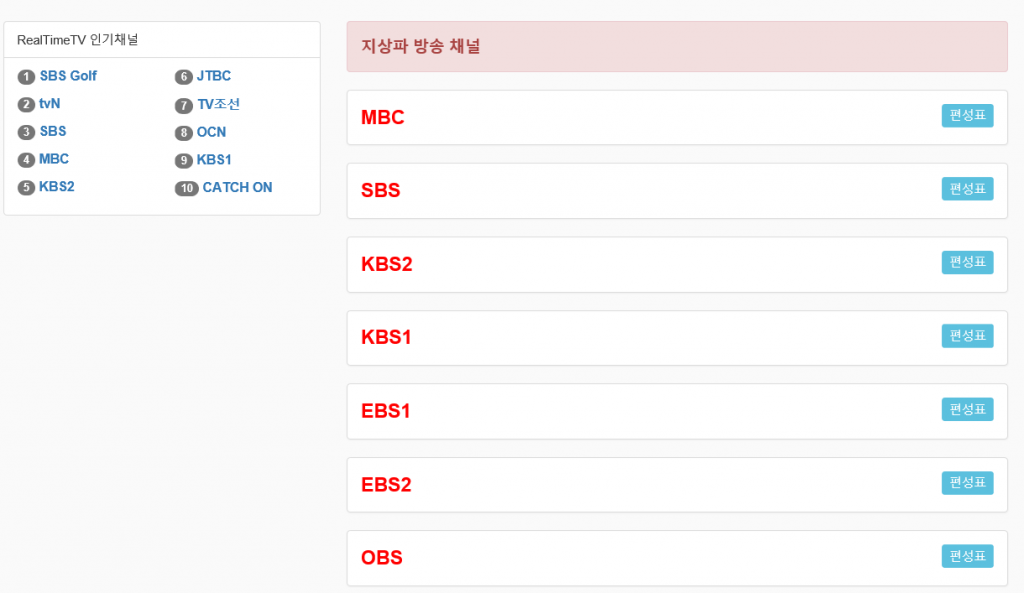 그밖에도 리얼타임티비라는 사이트가 있는데, 리얼타임티비 사이트는 접속 방법을 몰라서 링크 연결된 페이지를 참조하면 된다.