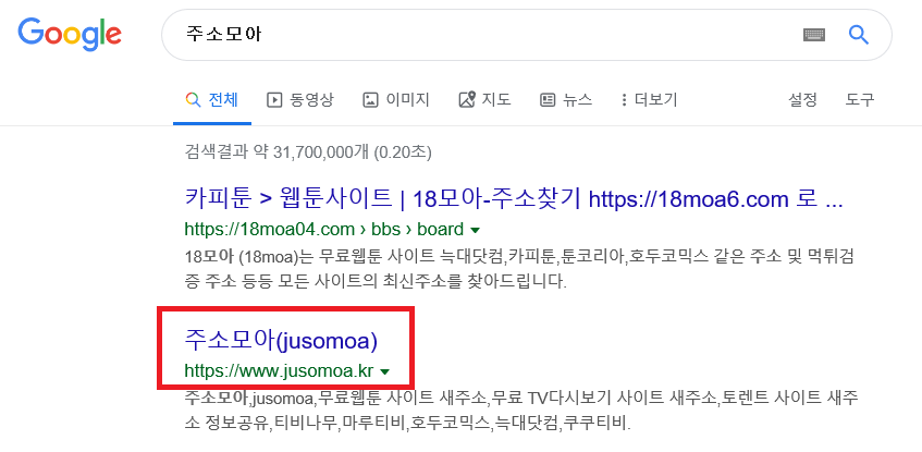 방법을 모르겠다면 사진을 참조하면 쉽게 접속할 수 있는 방법을 소개해놓은 상태이다. 주소모아 사이트가 여러개 있는데, 필자가 이용하는 사이트는 구글에서 2번째에 있는 주소모아 사이트이다.