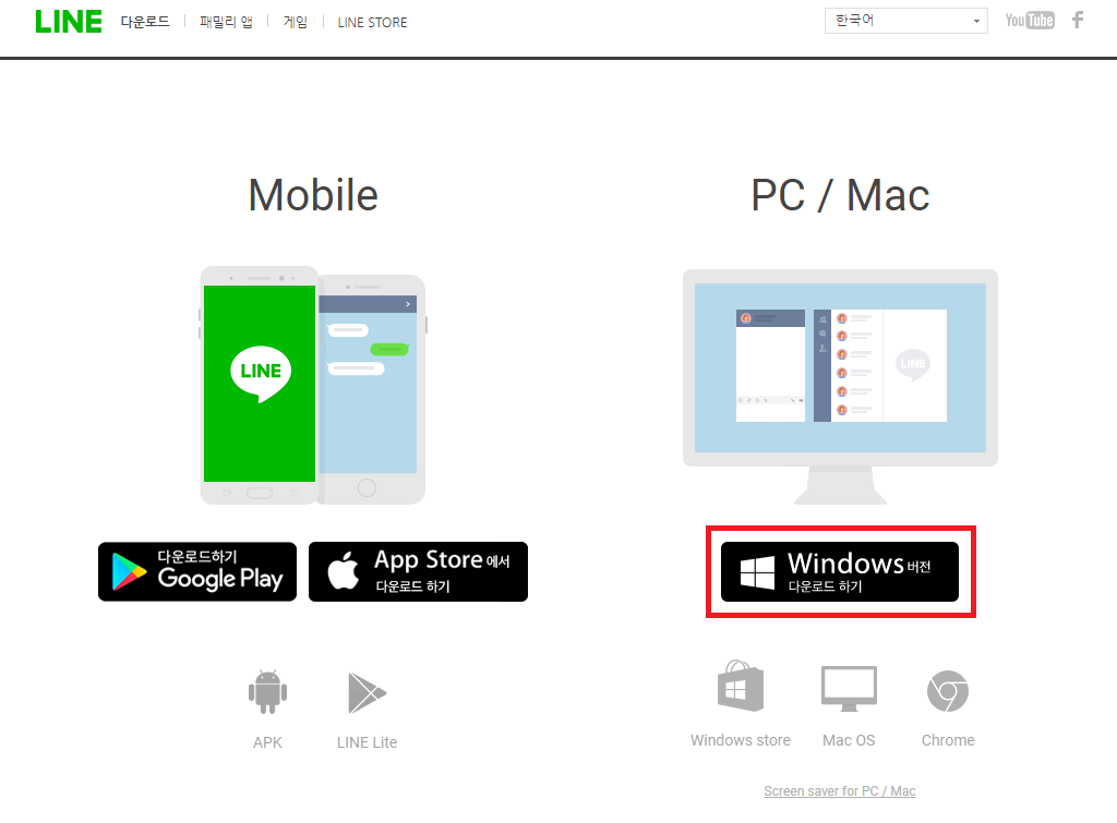 라인을 다운로드 받으려면 공식 홈페이지 다운로드 서비스센터에서 가능하다. 아래 링크를 참고 한다.