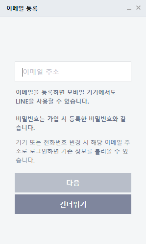 이메일 인증코드 까지 모두 완료되면 드디어 라인(LINE) 회원가입이 완료되었고, 처음 화면에서 가입한 이메일 주소를 입력하게 되면 로그인을 할 수 있다.