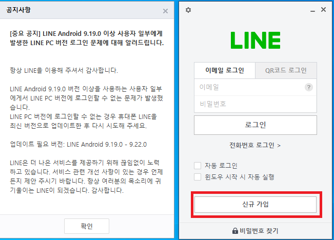 라인(LINE) PC버전 회원가입 로그인 인증 및 다운로드 방법