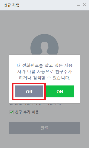 최종적으로 가입 되었으며 생각보다 가입절차가 간단하다. 친구 추가 허용이 체크표시되어 있는데, 체크해제 하는것이 좋다. 내 전화번호를 알고 있는 사용자가 나를 자동으로 친구추가 하거나 검색할 수 있게 된다.