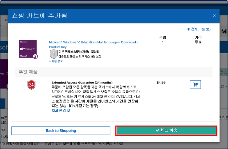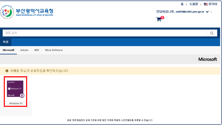 계정 확인이 완료되며, 윈도우10을 클릭하여 무료 구매를 계속 진행한다.