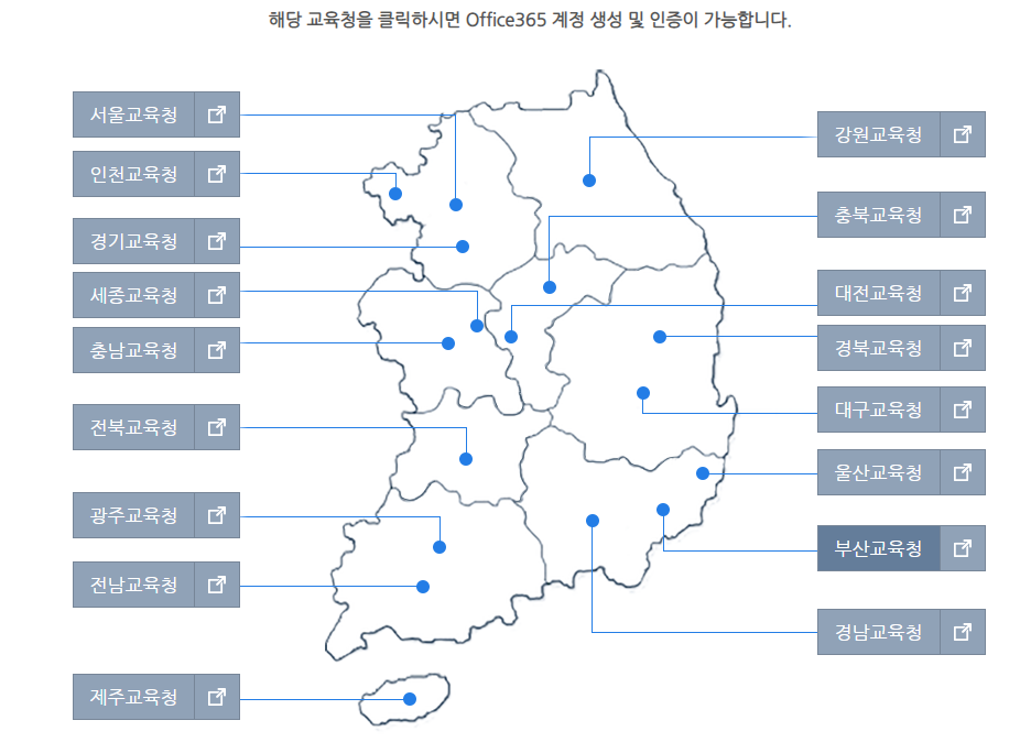 오피스365 홈페이지에 접속하게 된다. 학생용 클라우드 계정 생성 및 인증을 받을 수 있는 곳인데, 학생용 클라우드 계정 생성은 각 지역 시도교육청에서 신청이 가능하다. 그래서 이곳에서는 별도로 설명하지는 않겠다.