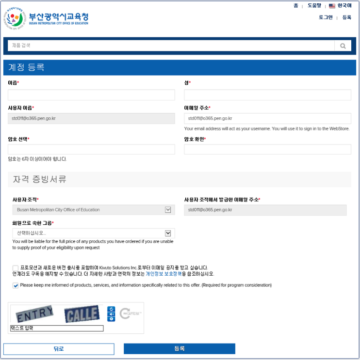부산광역시 교육청 웹스토어에 접속한다.(새창 또는 새탭)
