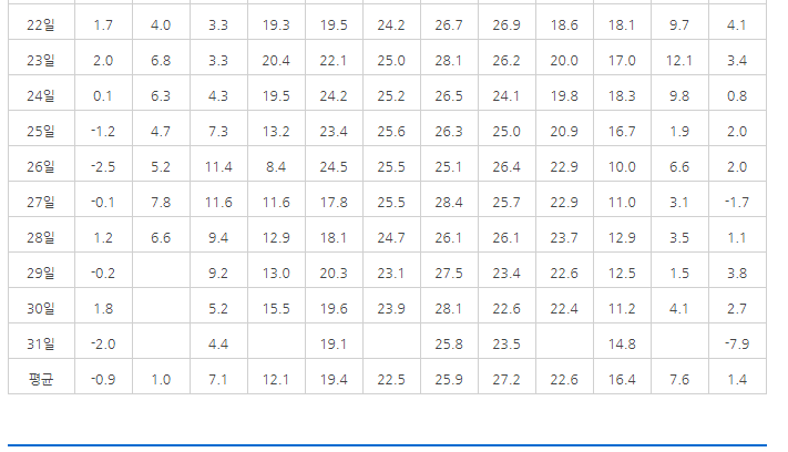 아래는 기상청 날씨누리에서 자료를 참고한 것이다.