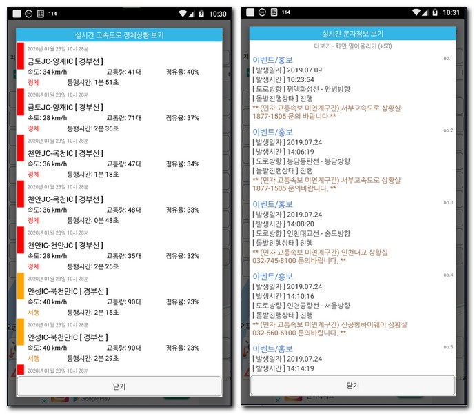 실시간 문자정보 보기를 통해 이 시각 다양한 이슈들이 발생하는 부분을 실시간으로 문자를 받아볼 수 있게 된다. 안전한 귀성길 귀경길이 될 수 있도록 도와주는 어플 앱인것 같다.