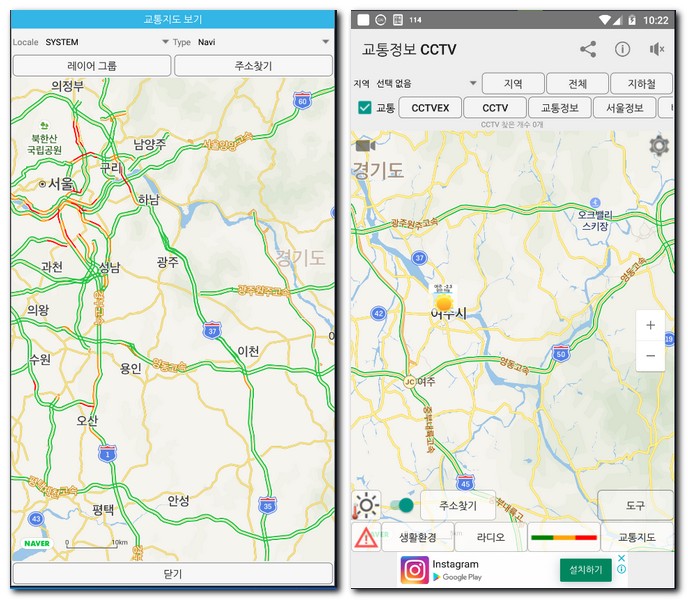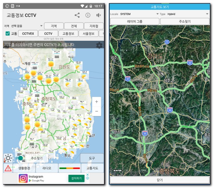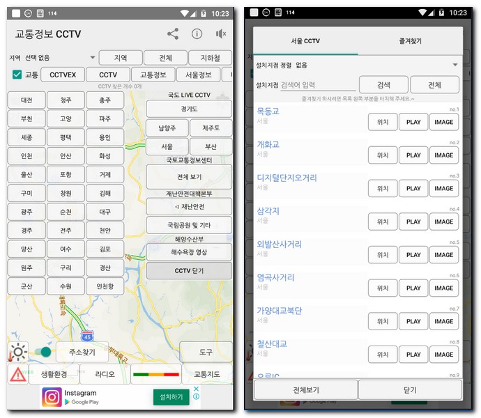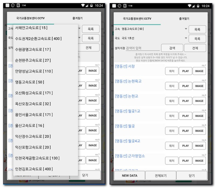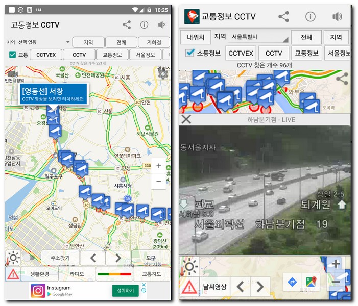 교통정보 CCTV LIVE 고속도로 국도 어플 앱