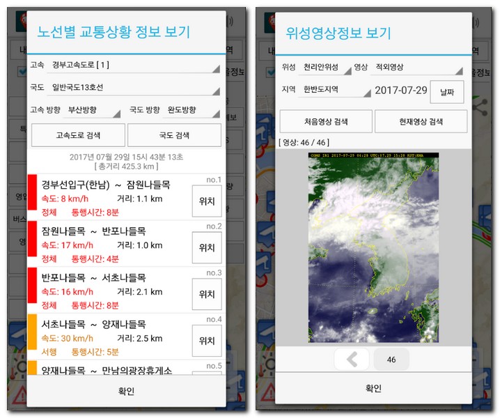 노선별 교통상황 정보 보기를 통해서 고속도로, 국도 등을 선택하고 각 위치를 세부적으로 확인할 수 있는게 장점이다. 위성영상정보 보기를 통해서 현재 날씨를 미리 알 수 있기 때문에 안전한 도로 운전에 도움을 준다.