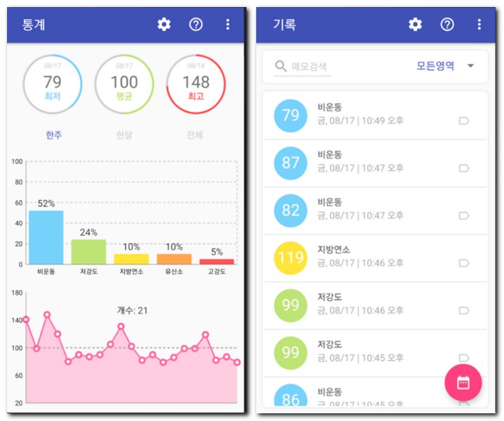 모든 기록을 핸드폰 휴대용으로도 활용 할 수 있는게 장점이며, 아까도 이야기 했지만 의사에게 PDF 보고서 파일을 전공할 수 있도록 되어 있다.