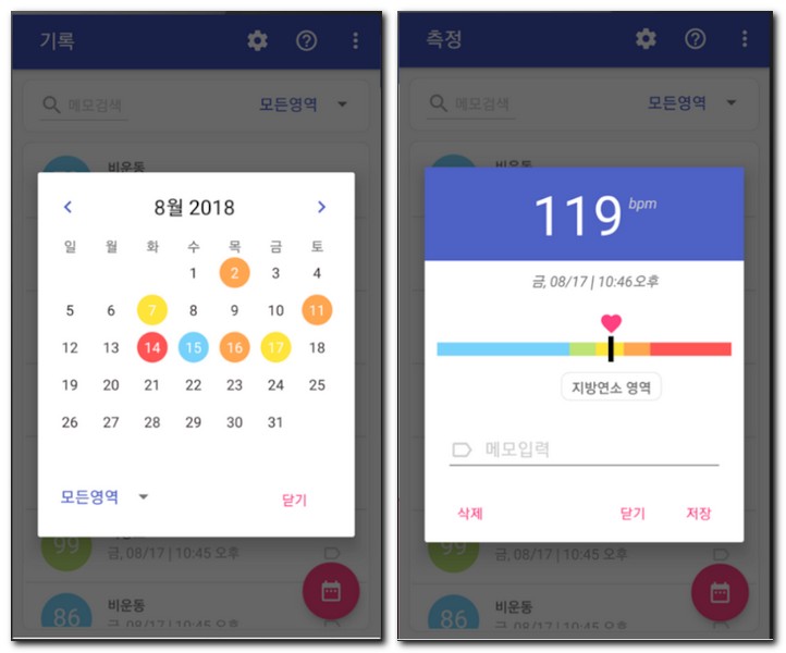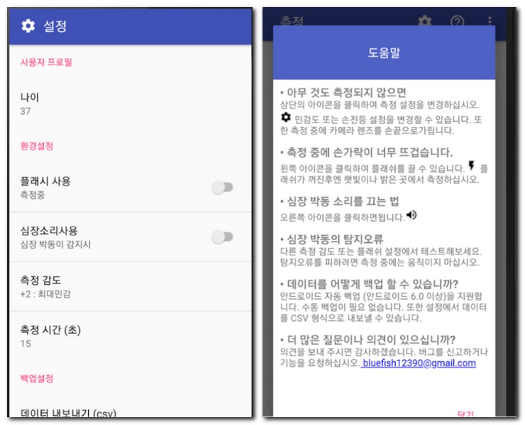 이처럼 사용자의 심장 박동수와 혈압을 측정할 수 있는 스마트폰 어플 앱이 있는데, 아까도 이야기 했듯이 기본적으로 혈압측정기 기기와 연동하는게 좋다. 혈압계라고도 부른다.