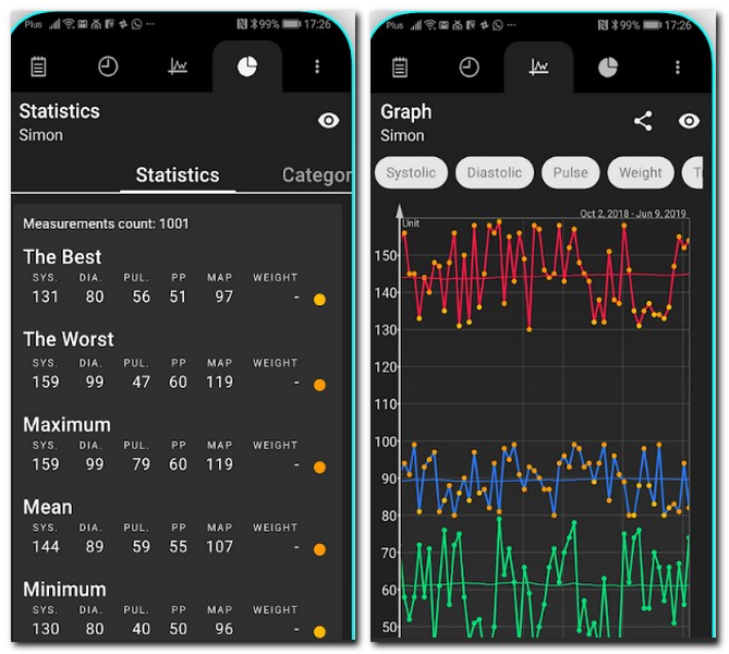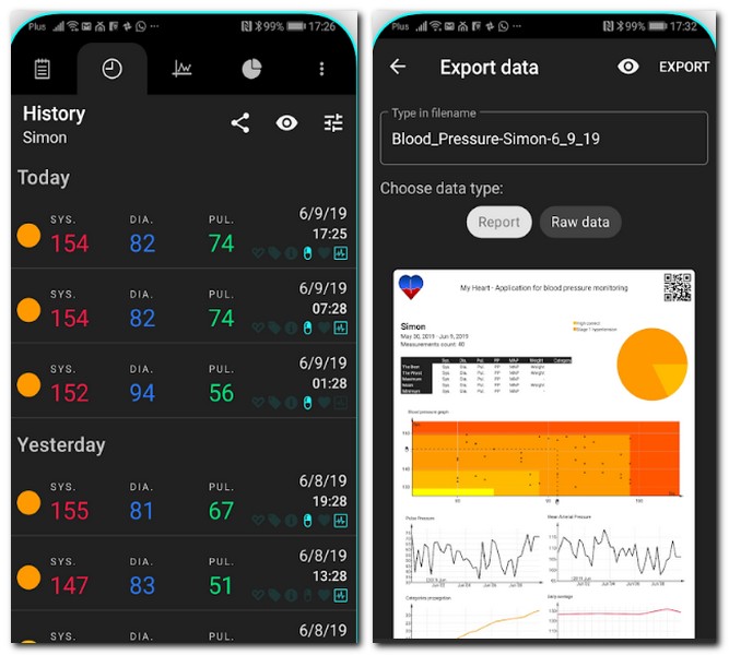 무엇보다 이 모든것을 무료로 사용할 수 있는데, 심박계, 심박수측정 맥박측정 및 기능에 대한 일일 제한이 없다. CSV 내보내기를 통해서 다른 사람들과 공유할 수도 있다.