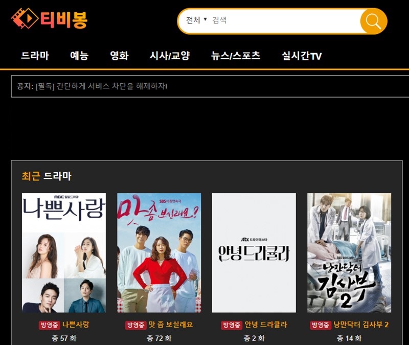 티비봉(tvbong) 사이트 주소가 계속 변경되길래 폐쇠된 것이 아닌지 사이트가 막힘으로 인해 더 이상 접속을 못하는것이 아닌지 걱정이 되기도 했지만 막상 접속을 해보니 정상적으로 접속이 가능했다.