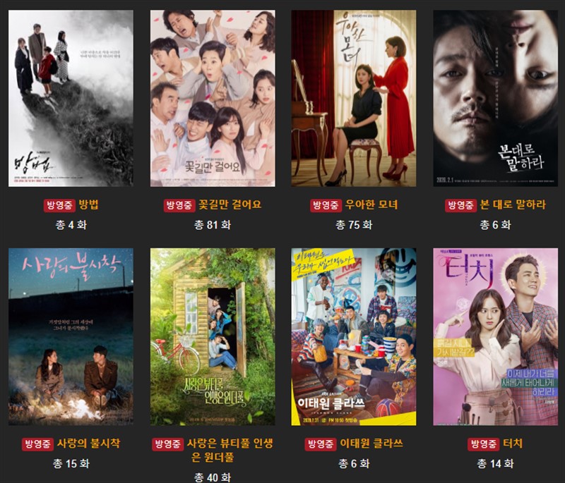 드라마 방법 외에도, 드라마 꽃길만 걸어요, 우아한 모녀, 본 대로 말하라, 사랑의 불시착, 사랑은 뷰티풀 인생은 원더풀, 이태원 클라쓰, 터치 등이 가장 빠르게 업로드 되었다.