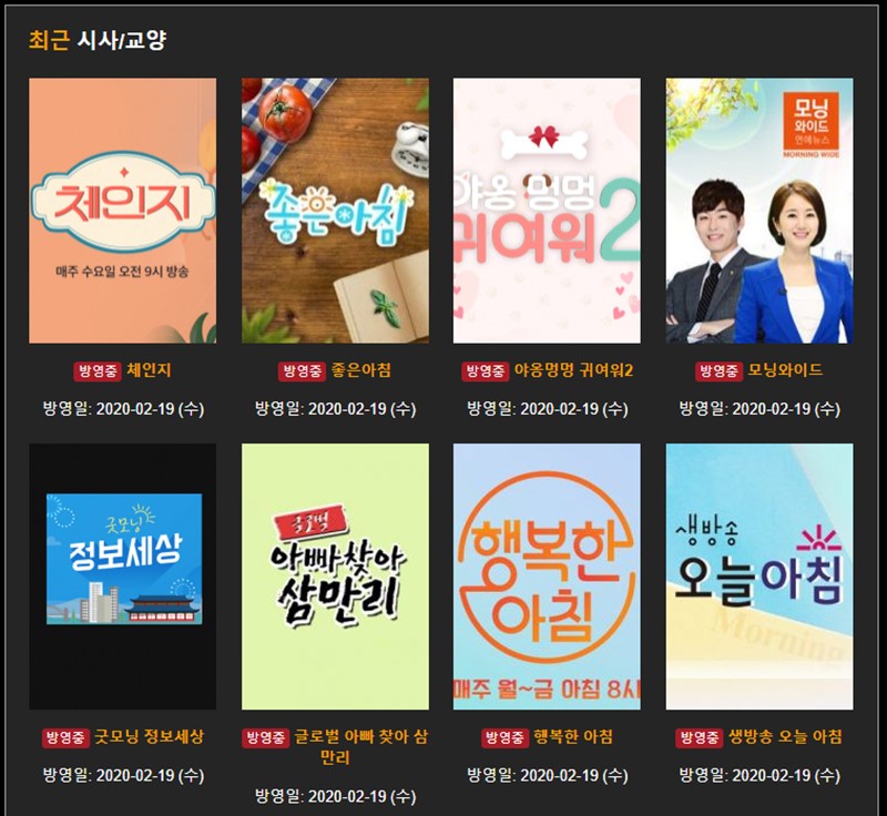 필자는 개인적으로 시사 교양을 좋아한다. 좋은 아침, 모닝 와이드, 글로벌 아빠 찾아 삼만리, 행복한 아침, 생방송 오늘 아침 등도 함께 업로드가 되었다.