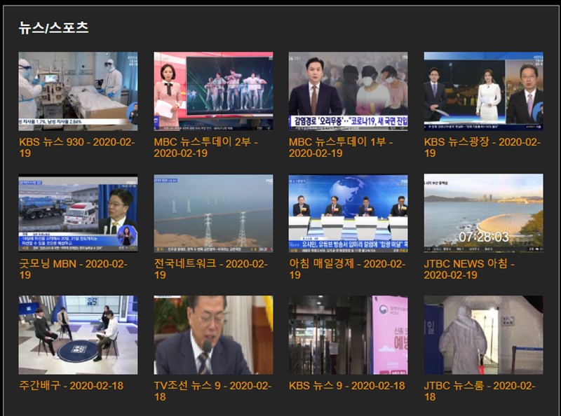 뉴스 스포츠 카테고리에서는 가장 우한폐렴과 관련된 뉴스기사와 고속도로 사고현상의 뉴스기사들이 업로드 되고 있는걸 확인할 수 있다.