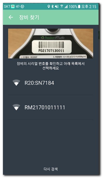 이 앱에서는 라돈 측정기 사용법에 대해서 자세히 설명하고 있다. 아까도 이야기 했듯이 라돈아이 제품이 있어야 정상 사용이 가능하고, 블루투스와 연동해서 사용하는 방식이다.