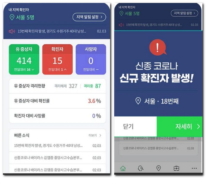 코로나 확진자 현황 정보 어플 앱 TOP5