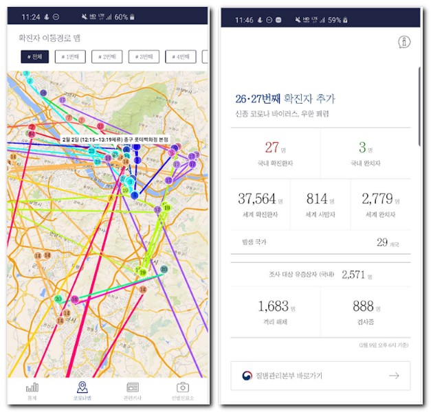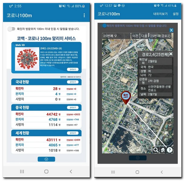 - 국내 확진자 이동 경로를 한눈에 파악가능