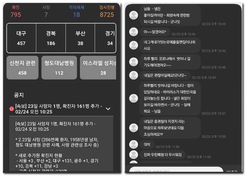 - 국내 및 중국, 세계 현황 실시간 업데이트