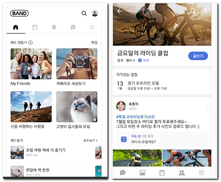 - 그룹만의 공간에서 글, 사진, 동영상, 파일을 공유하고 함께 공감
