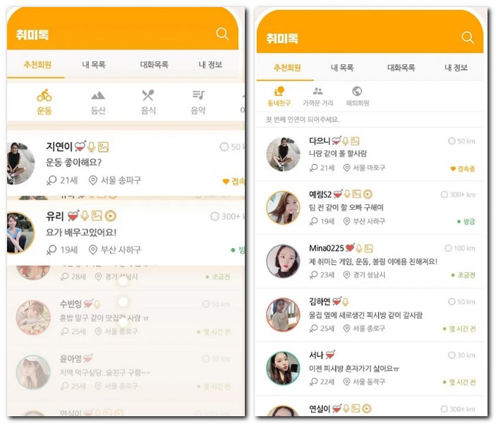 - 사용자의 지역 내 동호회가 우선적으로 노출됨