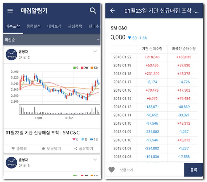 - 기관과 외국인의 매수 및 매도를 종합 정리