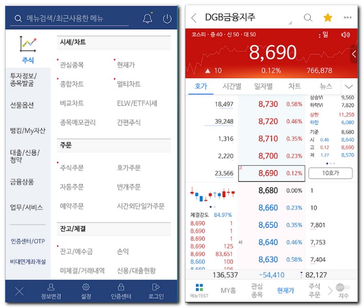 - 주식(국내/해외), 선물옵션, 금융상품, 신용/대출