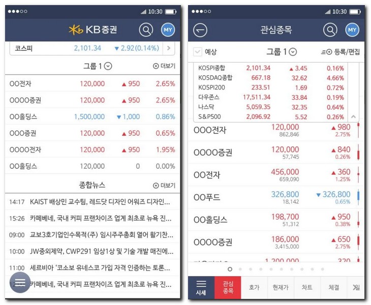 - 지수, 관심종목, 종합뉴스 정보 노출 강화