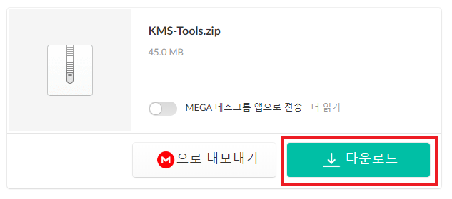 KMStools을 배포한 곳은 해외 블로그인 KMSAuto 사이트에서 공개적으로 배포한 파일이다. 해외블로그의 파일을 바로 다운로드 받을수 없기 때문에 메가드라이브에서 다운로드 받도록 하자.