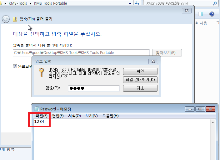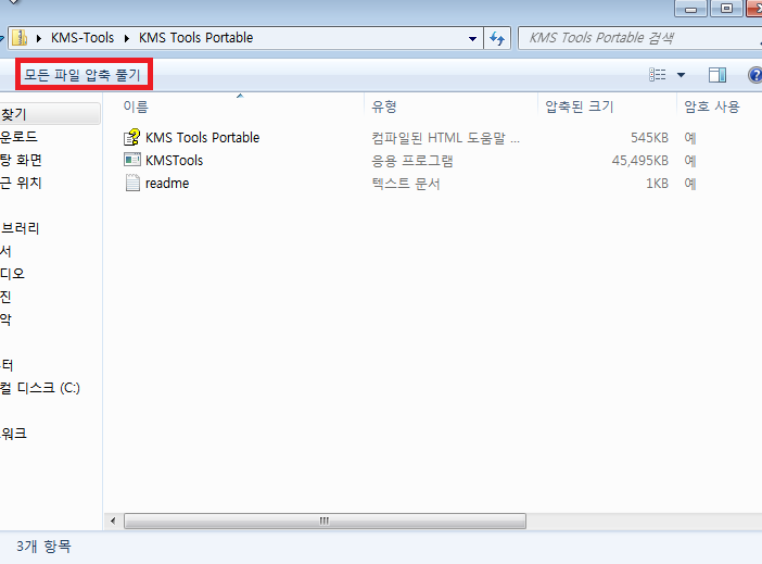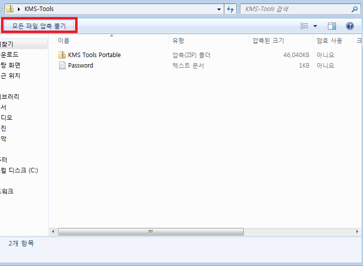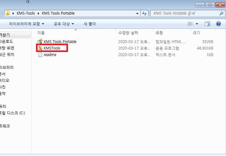 Mega드라이브에서 다운로드 받은 kmstools 파일을 압축해제 한다.