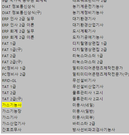화면에 보이는 가스기능사 자격증을 선택한다.