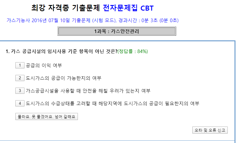전자문제집 CBT 사이트에서 좋은 점은 가스기능사 자격증 기출문제집을 온라인에서 바로 풀어볼 수 있다는점이다.