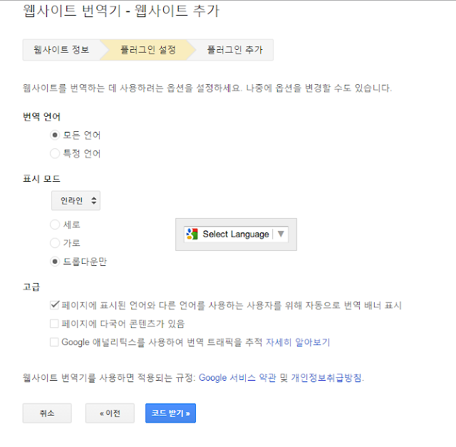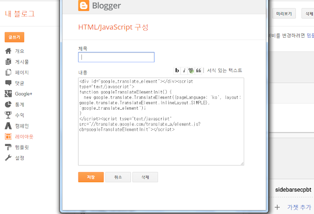 구글 블로그에 구글번역기 설치하는 방법