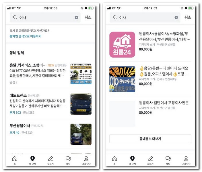 자신이 주로 중고거래를 하기 위해서 집 근처 동네에서 배송가능한 용달이나 여러가지 주변 가게를 검색할 수 있도록 손쉽게 되어 있다. 이부분은 그냥 참고용으로만 알고 있으면 된다.