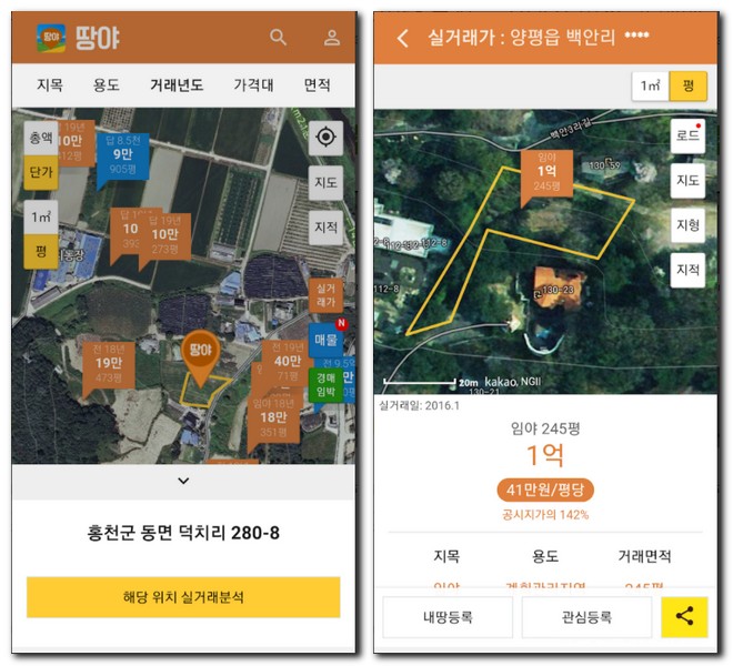 - 토지 거래가격 및 땅 실거래 가격 기준 인근 매물 정보