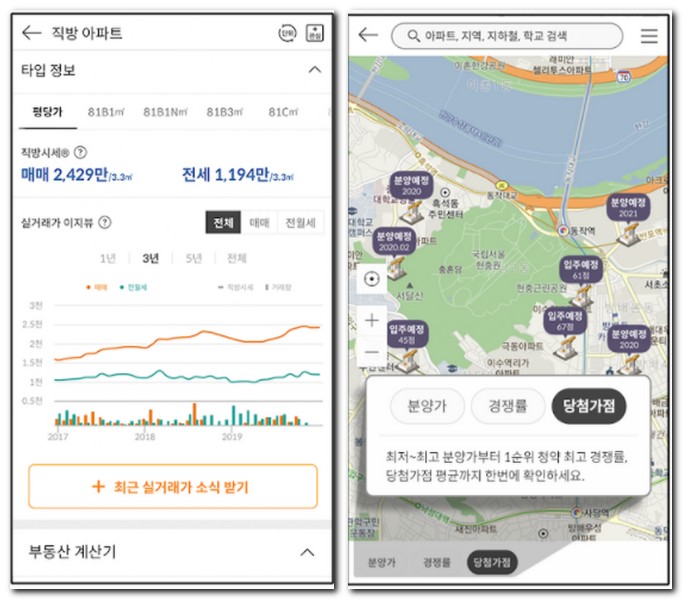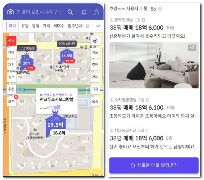 - 300만 명이 선택한 인기 아파트를 지도에서 확인할 수 있음