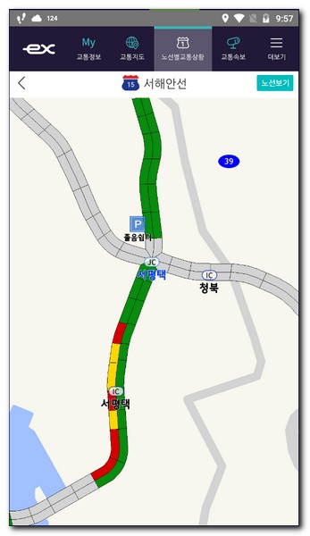 하지만 보다 자세하게 각 고속도로의 교통상황을 확인하고 싶다면 한국교통공사 공식앱(ex)를 이용하는것이 훨씬 편리하고 좋다.