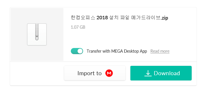 다운로드 할 수 있는 페이지로 이동하게 되는데, 한컴오피스 2018 설치 파일.zip(1.1G)라고 적혀 있는 파일을 선택해서 다운로드 받는다. zip파일은 7zip이나 기타 압축해제 프로그램을 이용해서 압축해제 하면된다.