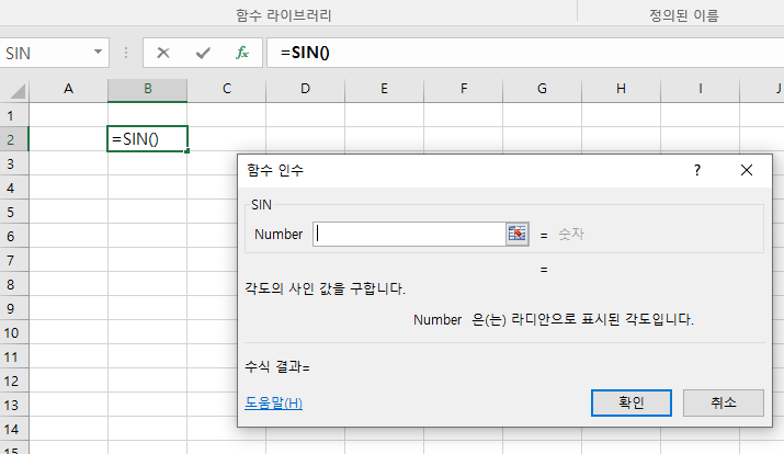 주어진 각도의 사인 값을 반환한다.2. 엑셀 SIN 함수 구문