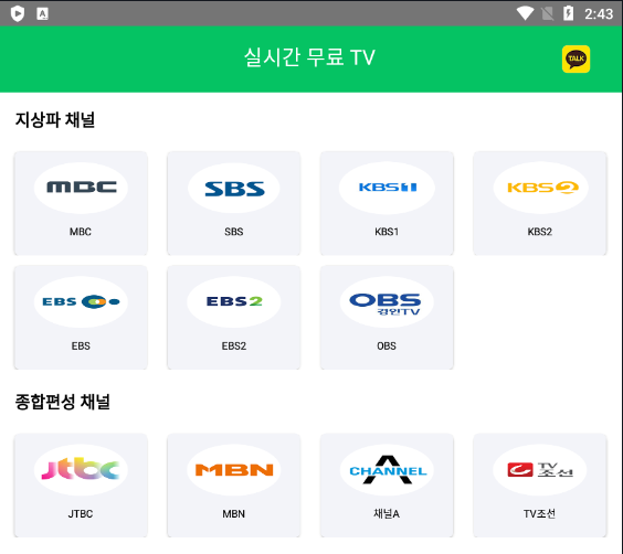 실시간TV 보기 어플 앱을 다운로드 받아 설치해서 사용하면 되는데, 구글플레이스토어, 앱스토어에 등록된 앱을 설치하면 된다. MBC, SBS, KBS1, KBS2, EBS, JTBC, MBN등 지상파, 종편 가릴것 없이 무료로 회원가입없이 영상시청을 할 수 있다.