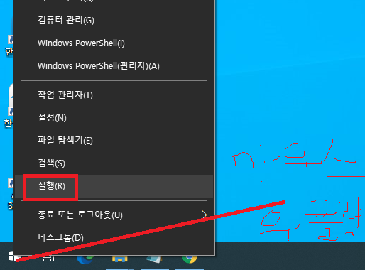 우선 윈도우10 cmd명령 프롬프트 상태로 이동해야 된다. 좌측하단 윈도우 아이콘에 마우스 우클릭을 한다.