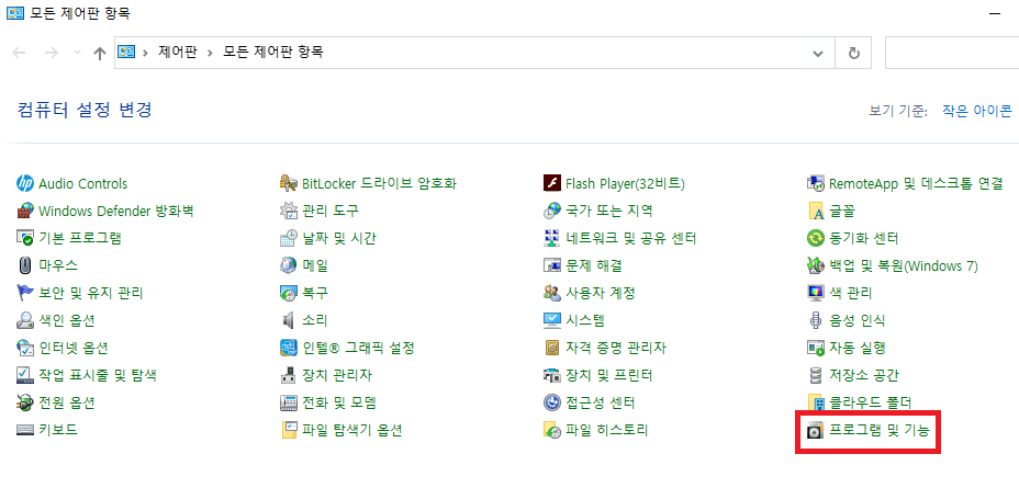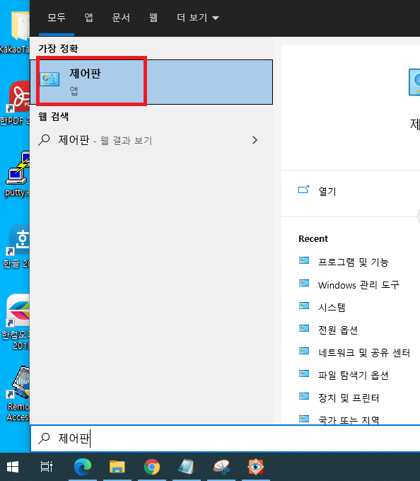 윈도우키 제어판 입력 -> 제어판 앱이 나타나면 클릭한다.