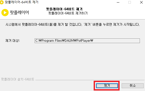 간단하게 팟플레이어(potplayer) 프로그램 삭제가 완료되었다.