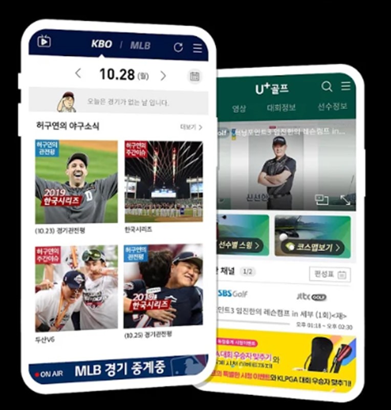 프로야구, 골프, U+아이돌 live 등유플러스만의 차별화된 콘텐츠를 편리하게 이용할 수 있음