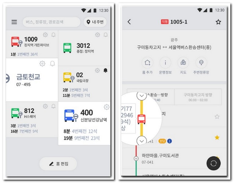 버스 네비게이션 기능으로 최적의 경로를 제공