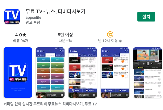 무료티비보기를 실시간으로 할 수 있는 어플 앱이다. 디엠비 TV 어플로써 최근에 생겨난것 같은데, 리뷰 점수를 확인해보면 4.0점 이다. 다운로드 횟수는 5만회 이상 다운로드 받았다.