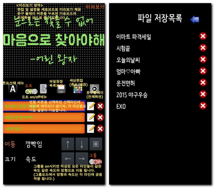 스마트폰 큰글씨를 표현하는것은 LED 네온싸인이 지원되는 앱을 활용하면 된다. 폰 이름쓰기도 가능하고, 핸드폰에 응원글쓰기도 되어서 여러가지 핸드폰 이름 응원방법들 중 하나이기도 하다. 휴대폰 응원문구를 보다 자유롭게 재밌게 만들어보자.