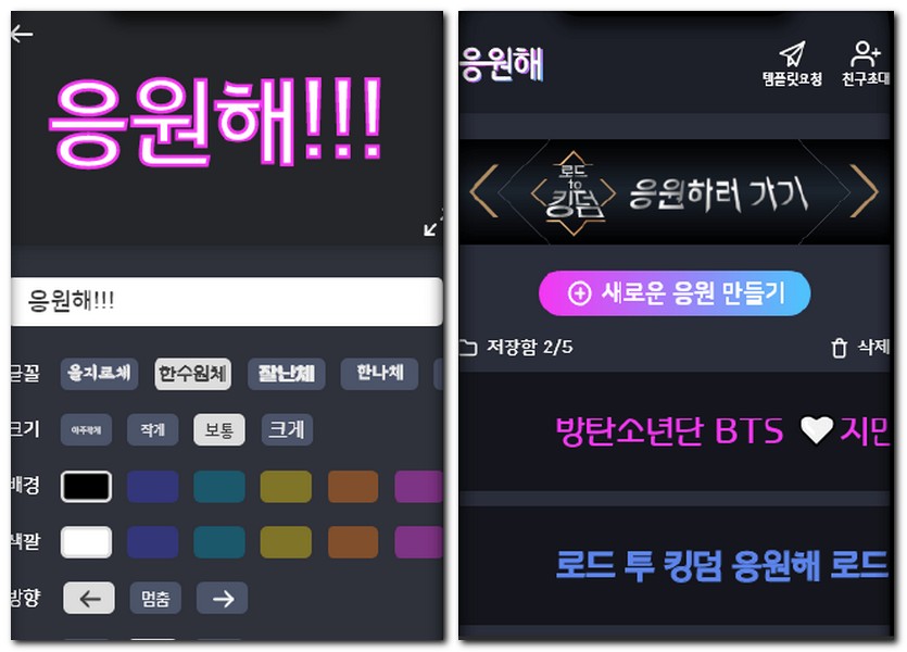 - 내가 좋아하는 아이돌의 응원배너를 예쁘게 만들 수 있는 응원배너 어플