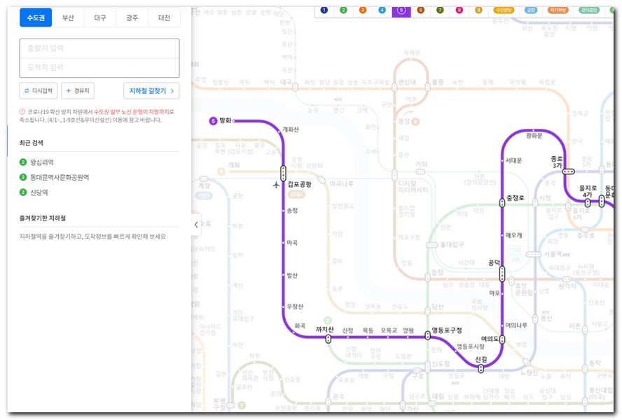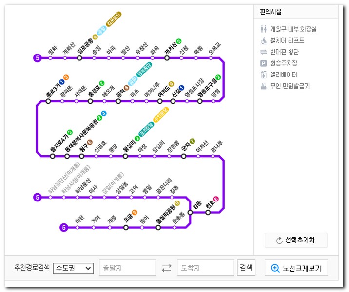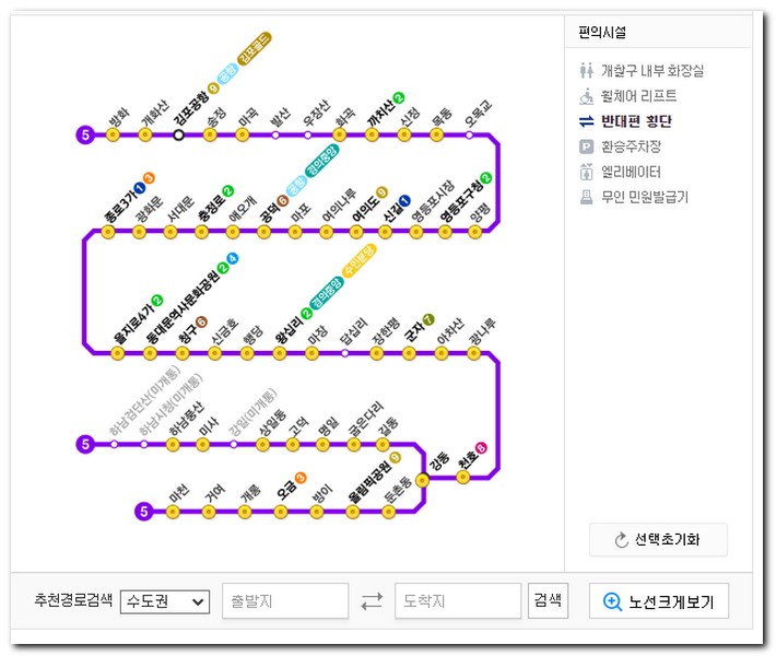 서울 지하철 운행시간표 1호선 5호선 경로검색